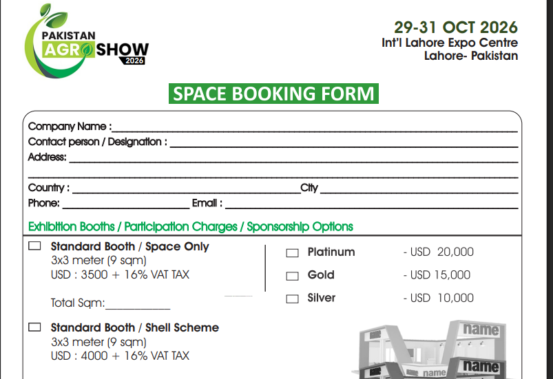 We are proud to be supported by leading organisations and sponsors shaping Pakistan’s agribusiness landscape. Sponsorship packages (Gold, Silver, Bronze) available now: join and elevate your brand through the show’s marketing campaign, media outreach, and onsite branding opportunities.